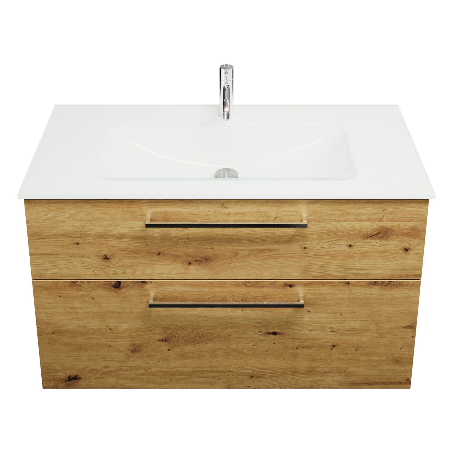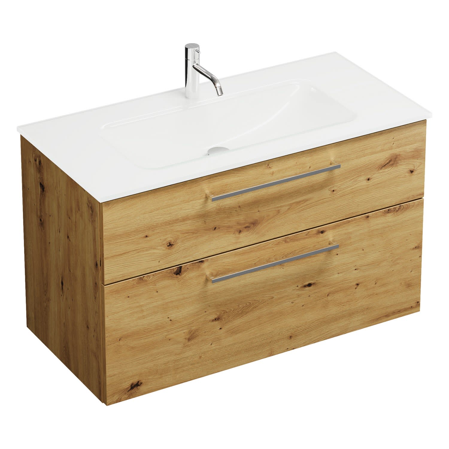 burgbad Eqio Waschtischkombination mit Glaswaschtisch 102 cm, mit Stangengriff P95