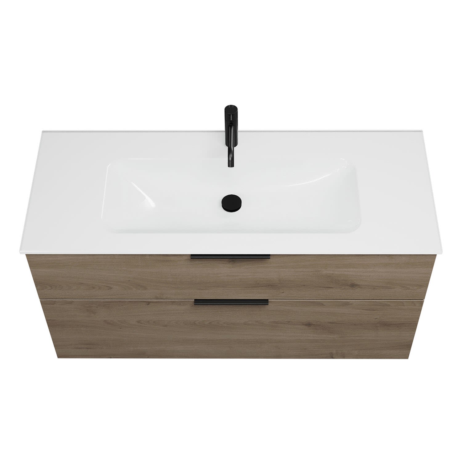 - 1 Schublade oben, 35 cm tief, mit Siphonausschnitt und Inneneinteilung