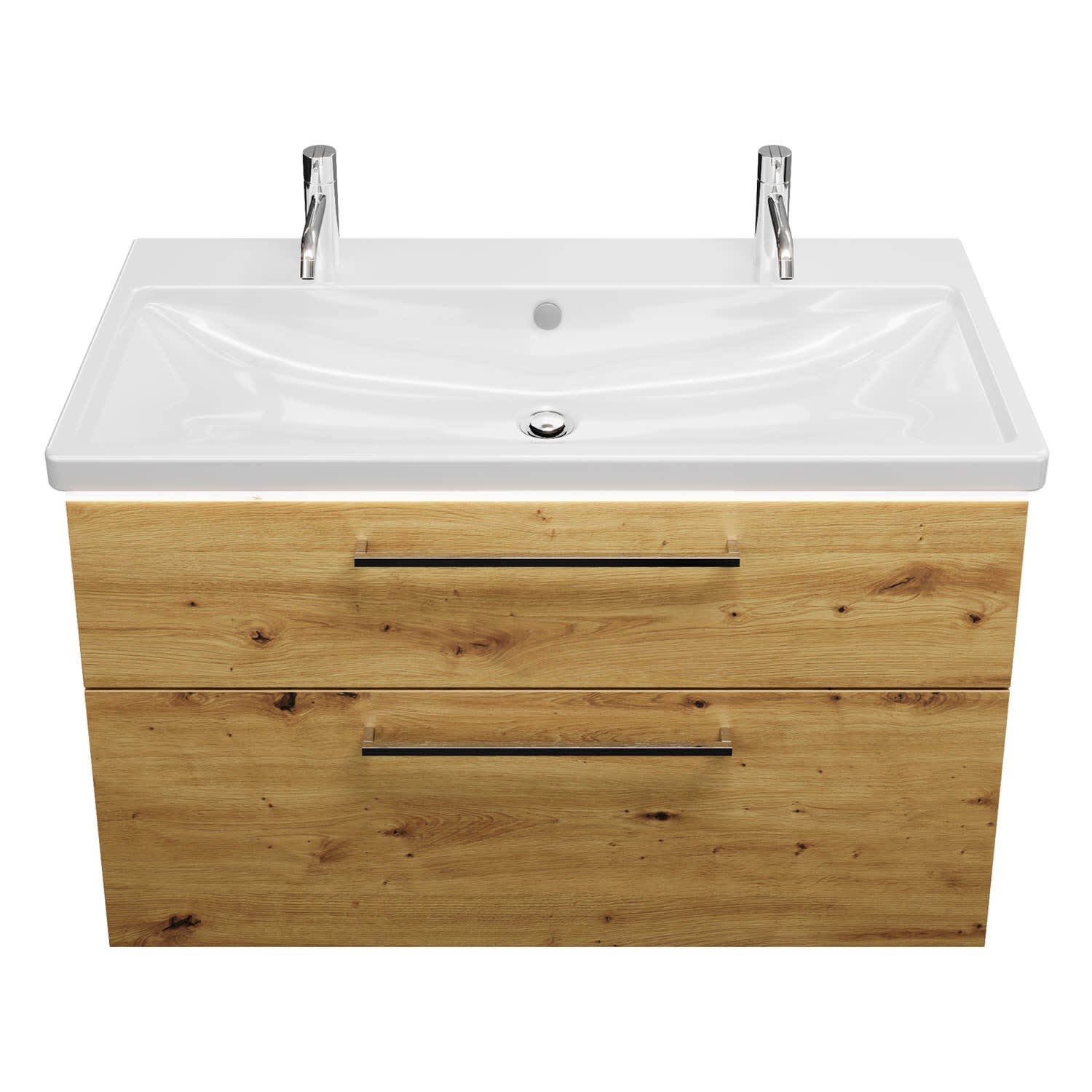 burgbad Eqio Waschtischkombination mit Keramik-Waschtisch mit LED-Beleuchtung, 103 cm, mit Stangengriff P95