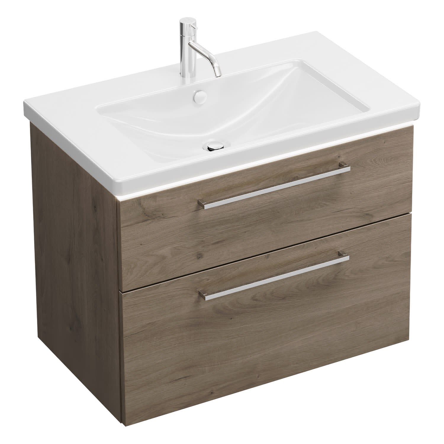 burgbad Eqio Waschtischkombination mit Keramik-Waschtisch mit LED-Beleuchtung, 83 cm, mit Stangengriff P95