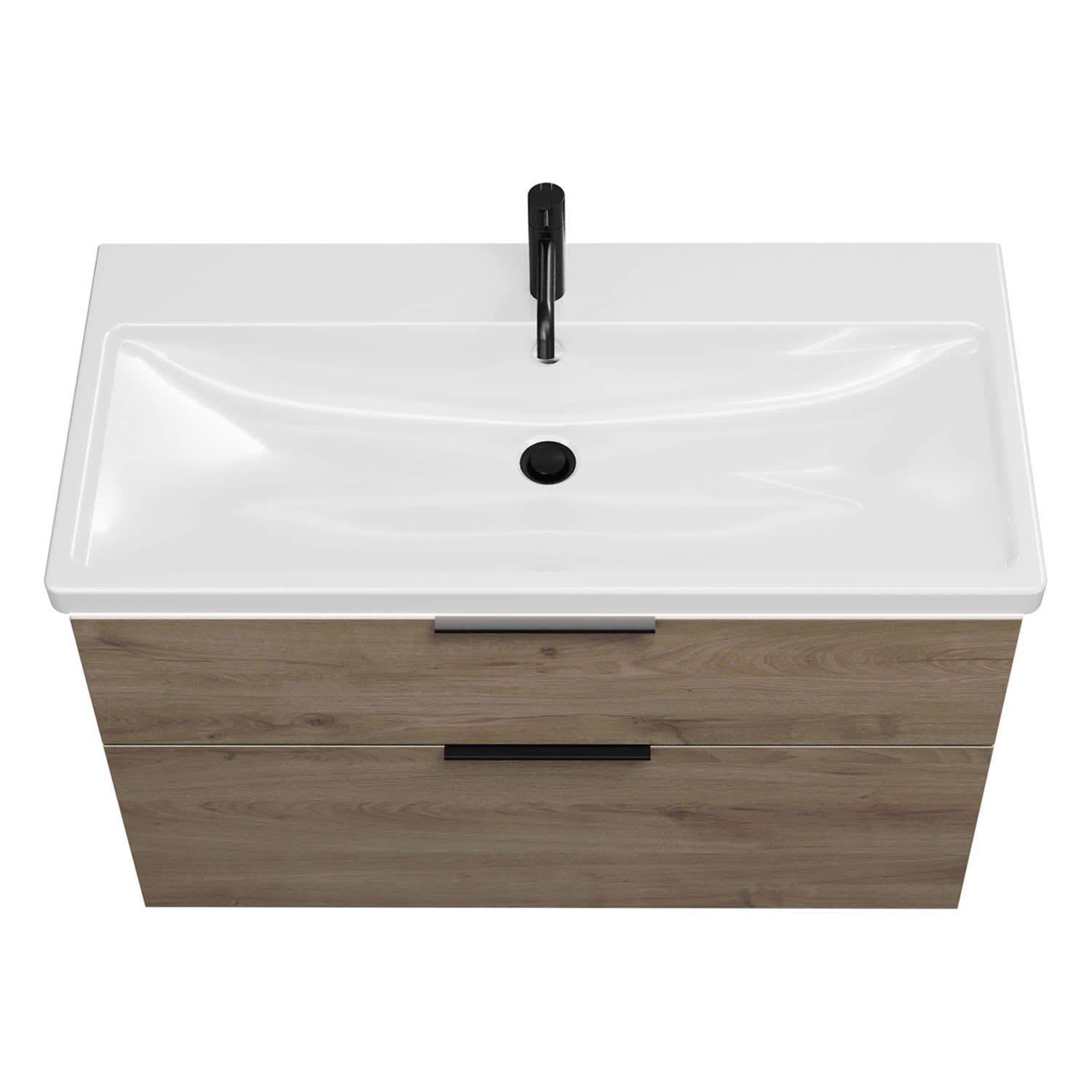 burgbad Eqio Waschtischkombination mit Keramik-Waschtisch mit LED-Beleuchtung, 103 cm, mit Griff G0200