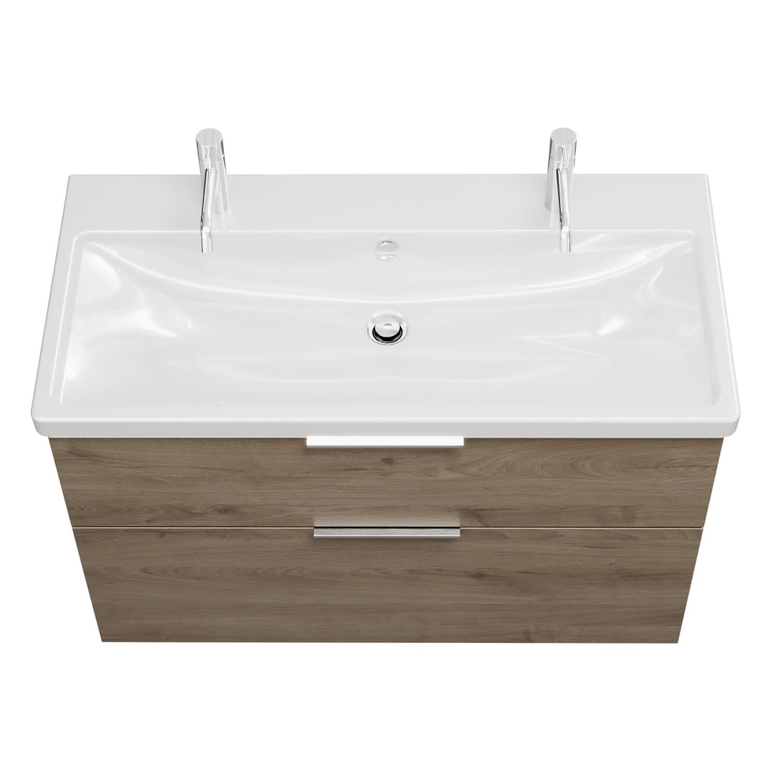 burgbad Eqio Waschtischkombination mit Keramik-Waschtisch mit LED-Beleuchtung, 103 cm, mit Griff G0146