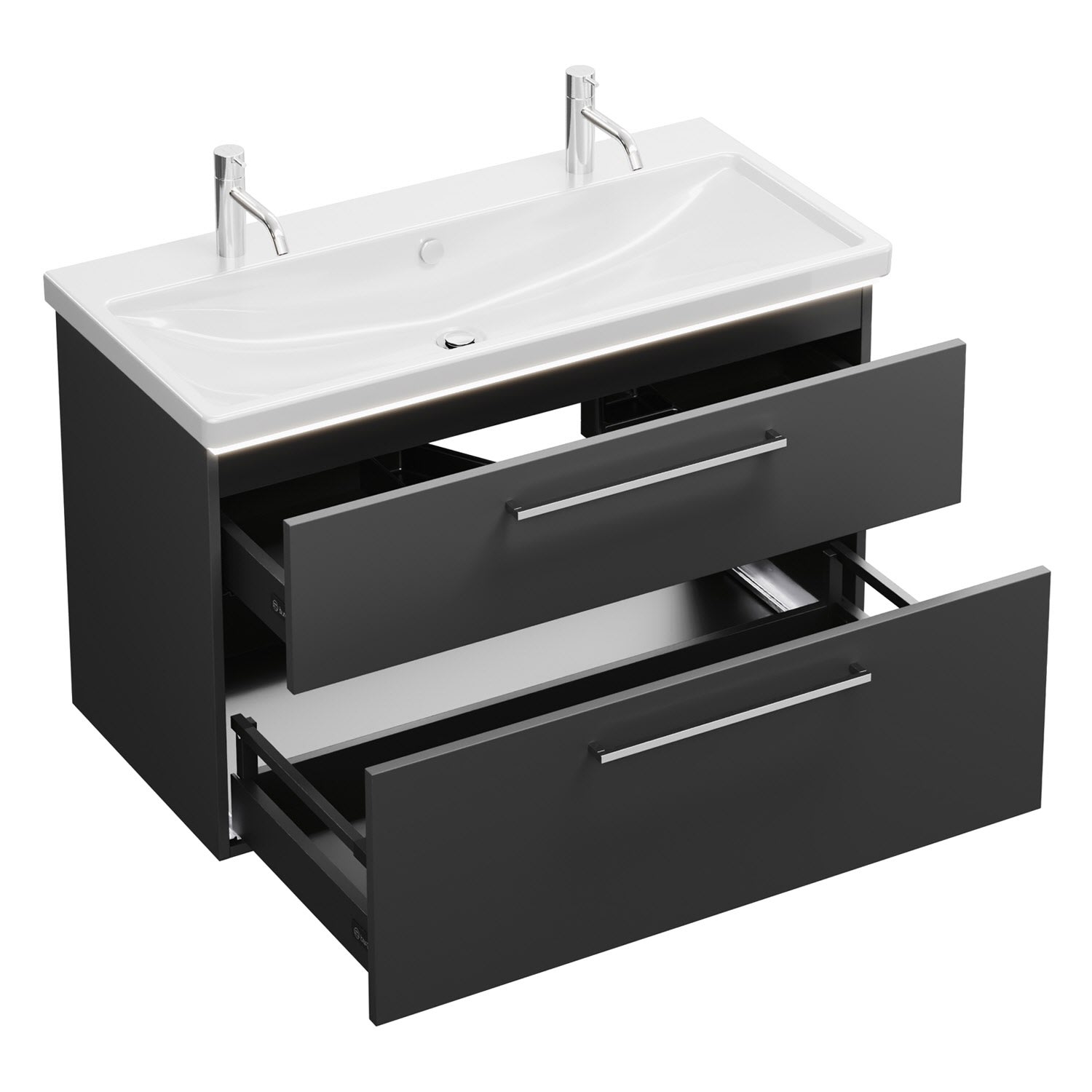 burgbad Eqio Waschtischkombination mit Keramik-Waschtisch mit LED-Beleuchtung, 103 cm, mit Stangengriff P95