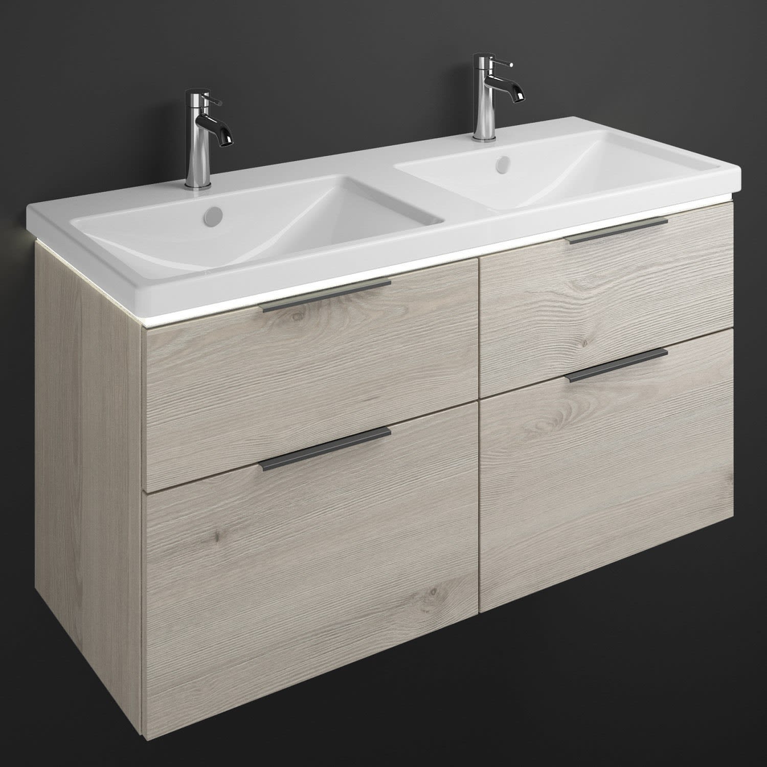 burgbad Eqio Waschtischkombination mit Keramik-Doppelwaschtisch mit LED-Beleuchtung, 123 cm, mit Griff G0200