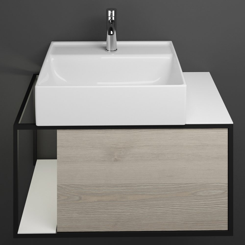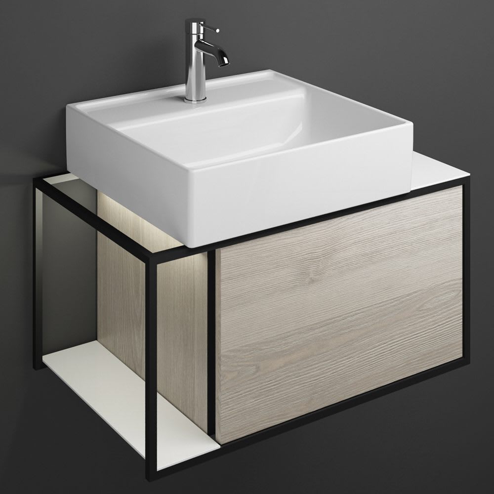 burgbad Junit Waschtischkombination mit Keramik-Waschtisch und LED-Beleuchtung Links 76,5 cm
