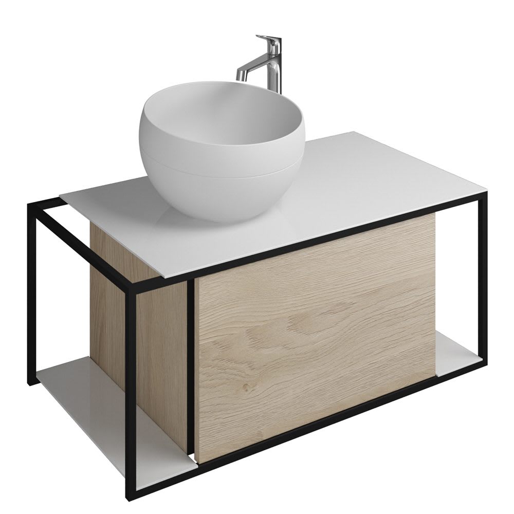 burgbad Junit Waschtischkombination mit Mineralguss-Waschtisch 90 cm Links