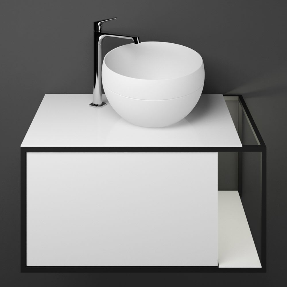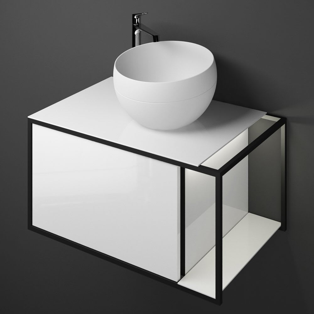 burgbad Junit Waschtischkombination mit Mineralguss-Waschtisch und LED-Beleuchtung 76,5 cm Rechts