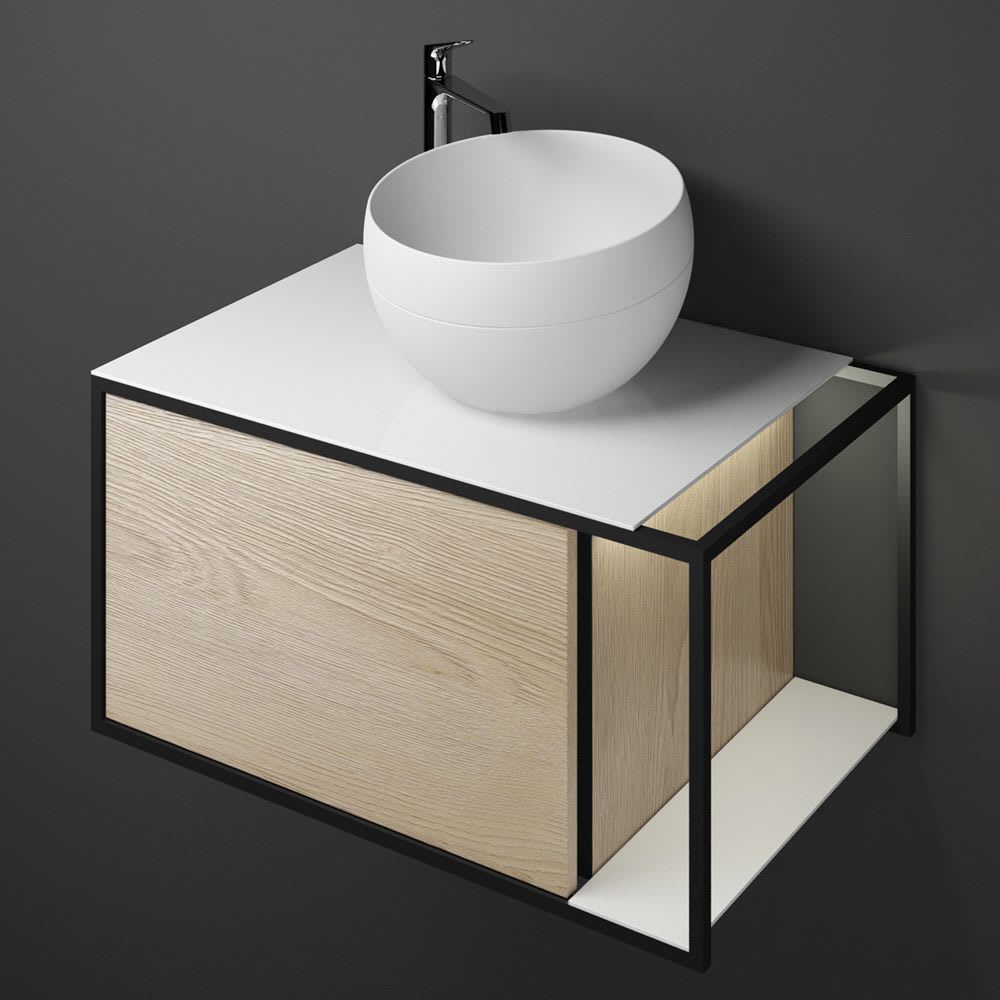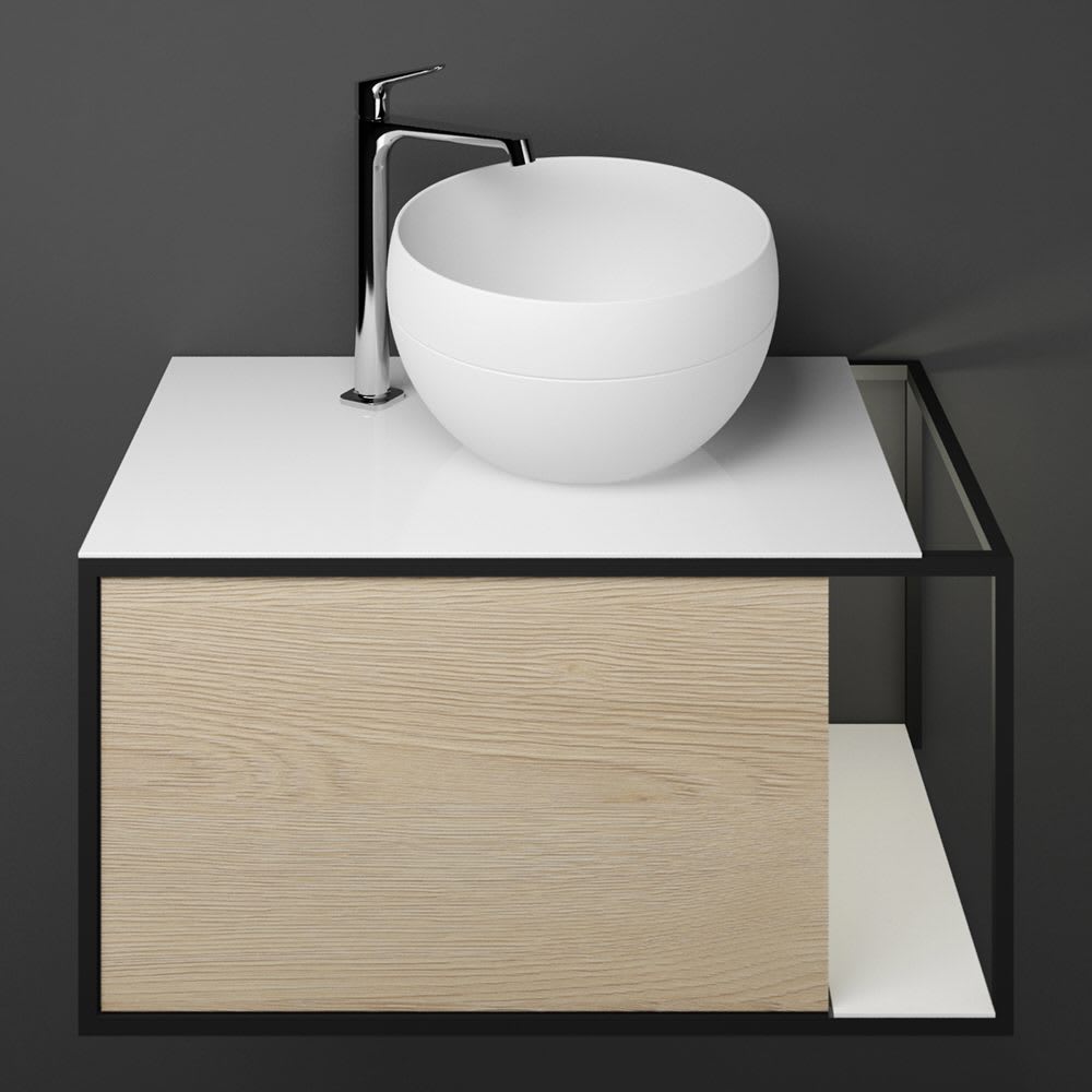 burgbad Junit Waschtischkombination mit Mineralguss-Waschtisch und LED-Beleuchtung 76,5 cm Rechts