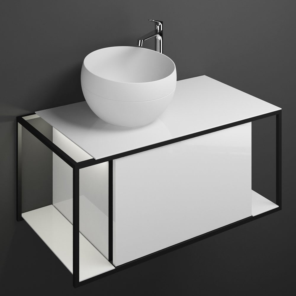 burgbad Junit Waschtischkombination mit Mineralguss-Waschtisch und LED-Beleuchtung 90 cm Links