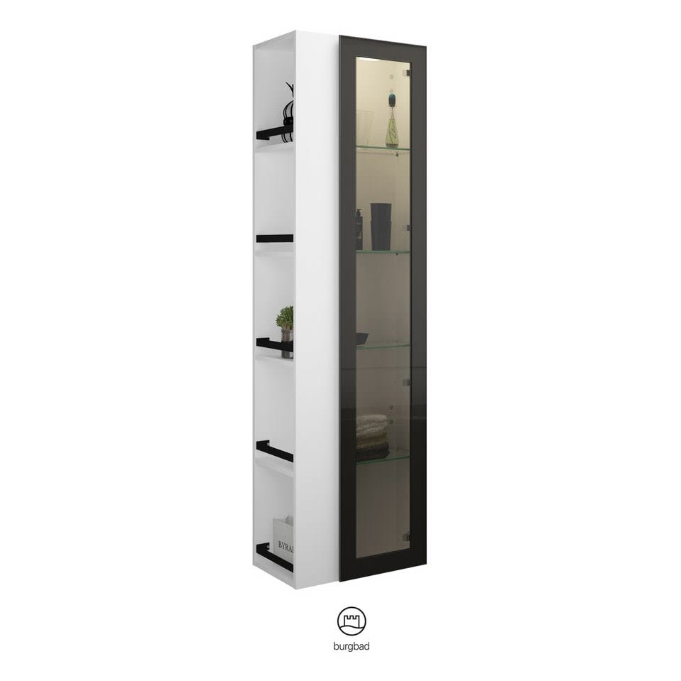 burgbad Yumo Hochschrank 50 x 32 x 176 cm mit Griff G0179 und LED-Innenbeleuchtung, Regal links