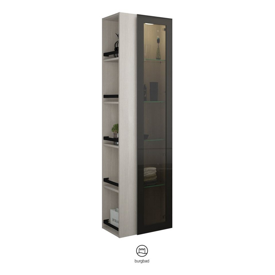 burgbad Yumo Hochschrank 50 x 32 x 176 cm mit Griff G0179 und LED-Innenbeleuchtung, Regal links