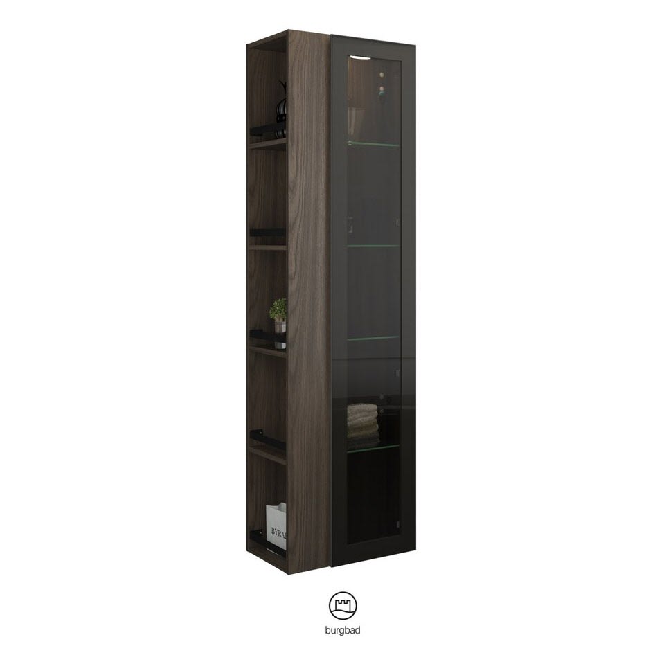burgbad Yumo Hochschrank 50 x 32 x 176 cm mit Griff G0179 und LED-Innenbeleuchtung, Regal links