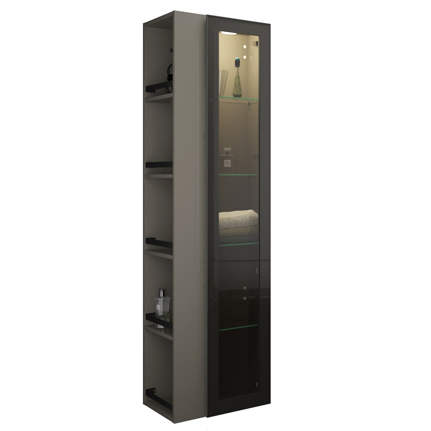 burgbad Yumo Hochschrank 50 x 32 x 176 cm mit Griff G0179 und LED-Innenbeleuchtung, Regal links