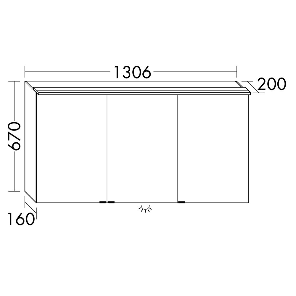 burgbad Yumo Spiegelschrank mit horizontaler LED-Beleuchtung und Waschtischbeleuchtung 130 cm, links