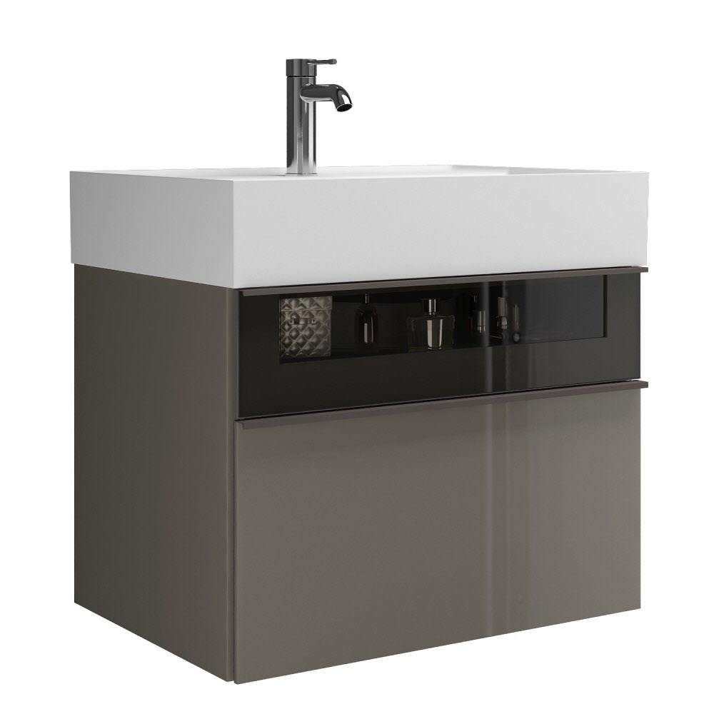 burgbad Yumo Mineralguss-Waschtisch inkl. Waschtischunterschrank 66,5 cm mit obere Alurahmenfront