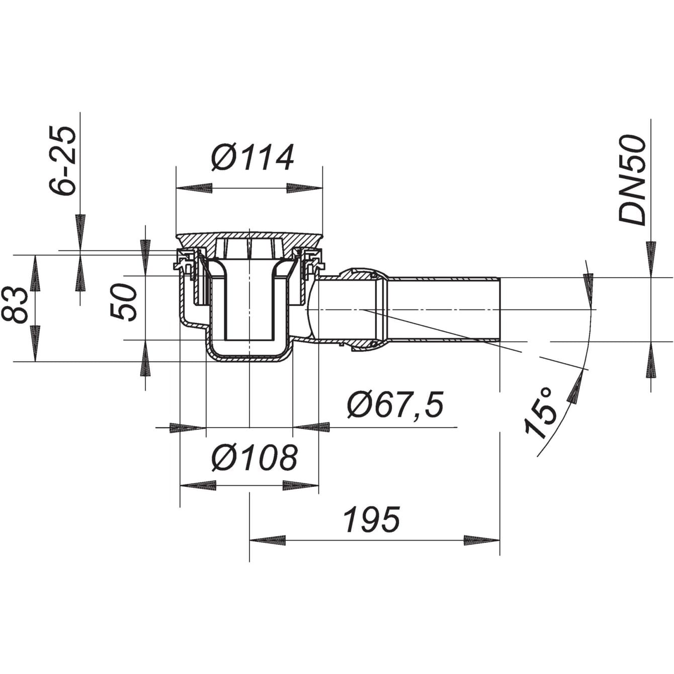 - seitlichem Ablaufstutzen DN 50, mit Kugelgelenk verstellbar von 0 - 15 Grad