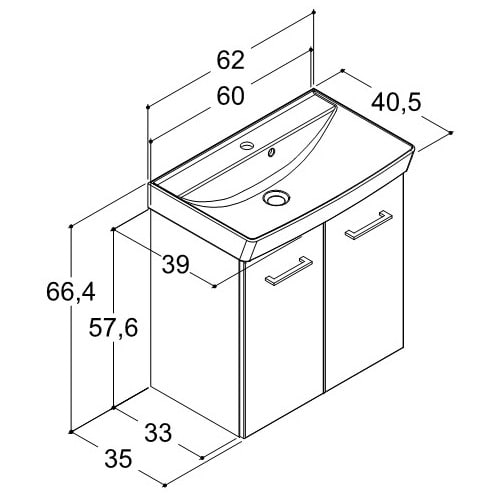 B: 62 T: 40,5 H: 66,4 cm