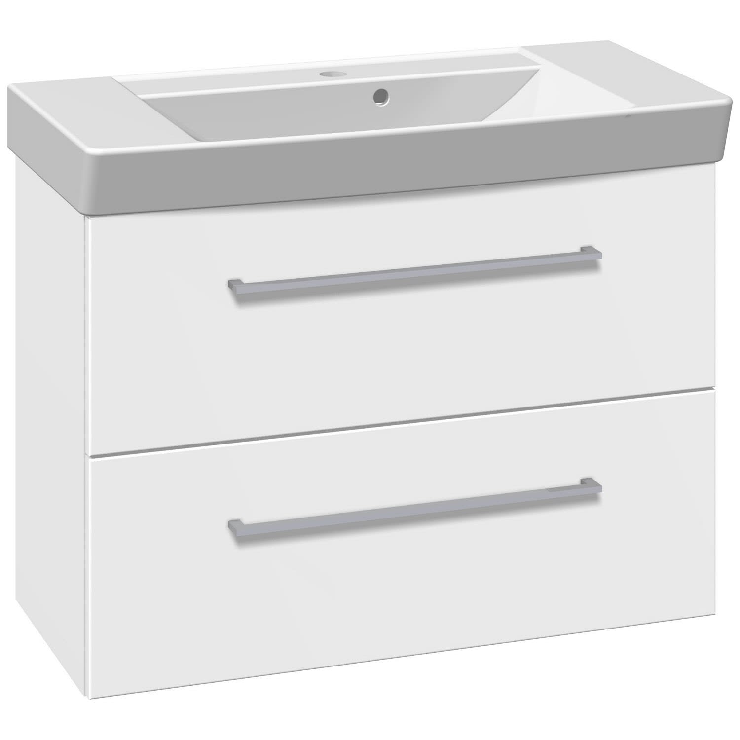 Dansani Mido Möbelset mit Waschtisch und Auszug-Unterschrank, Griffe in chrom, 82 cm