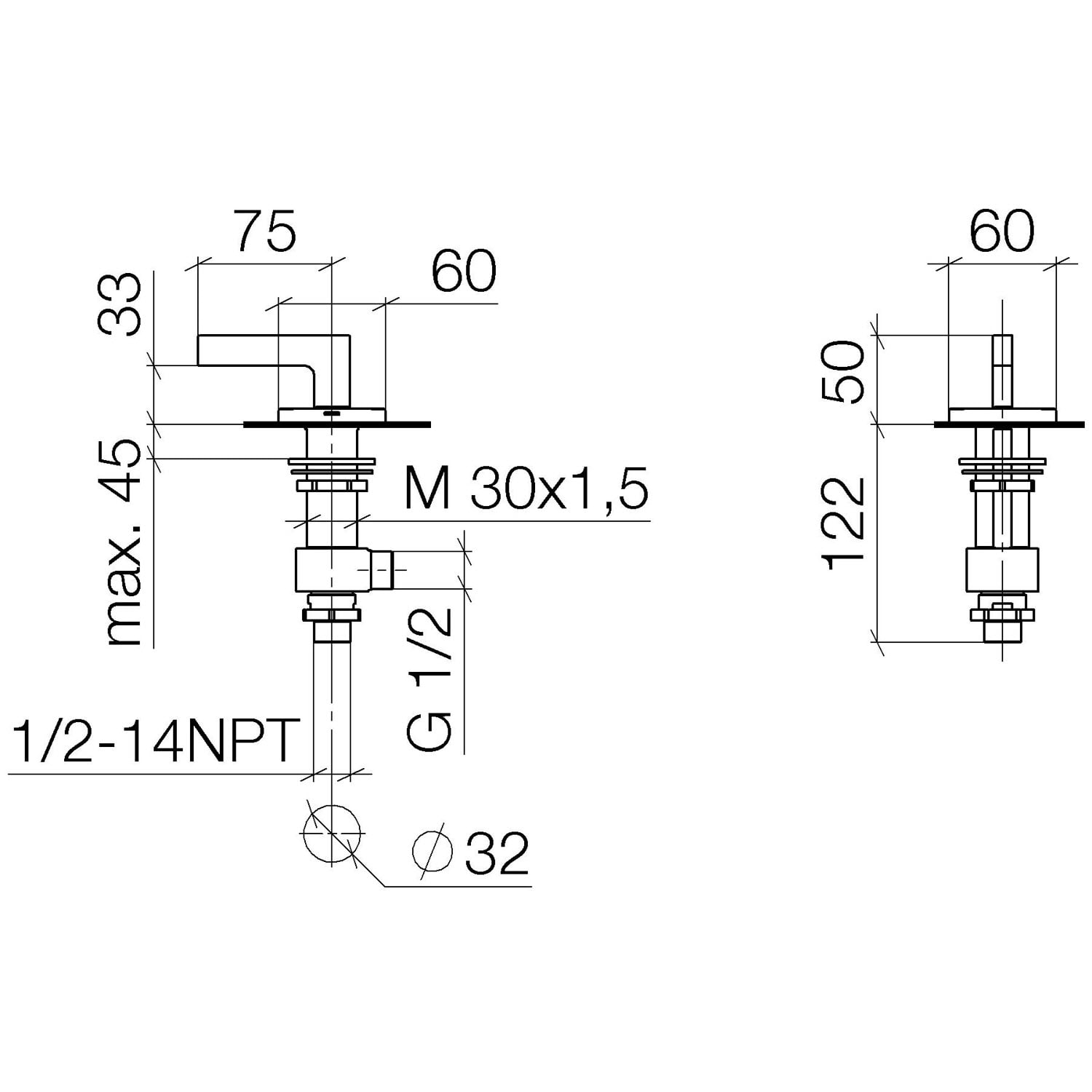 Dornbracht CL.1 Seitenventil, linksschließend, kalt