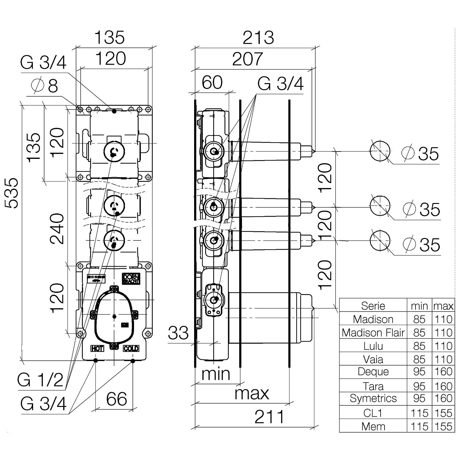 Dornbracht Grundkörper xTool Thermostatmodul mit 3 Ventilen 3/4"