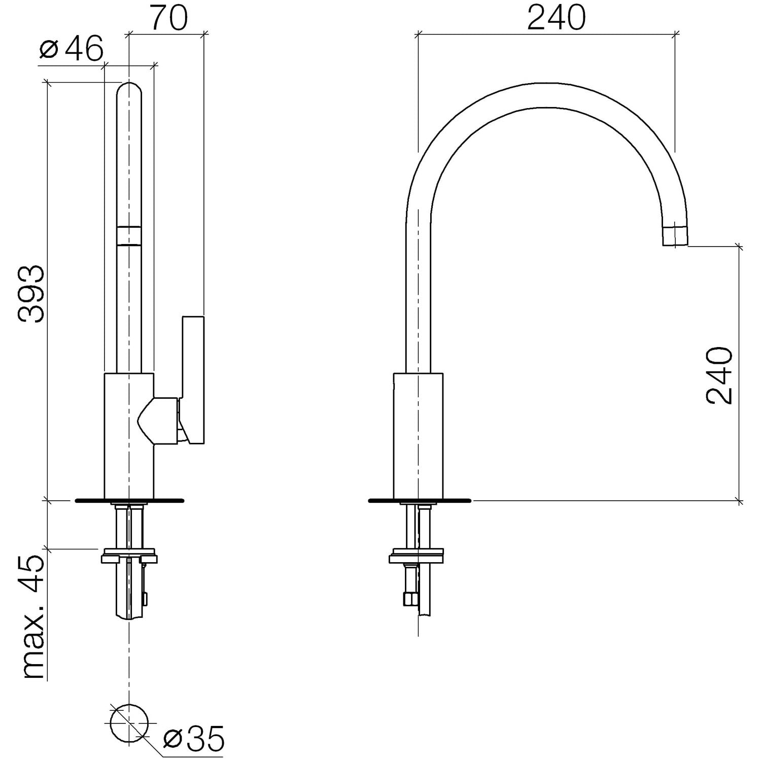 Dornbracht Tara Ultra Einhebelmischer mit Griffhebel rechts