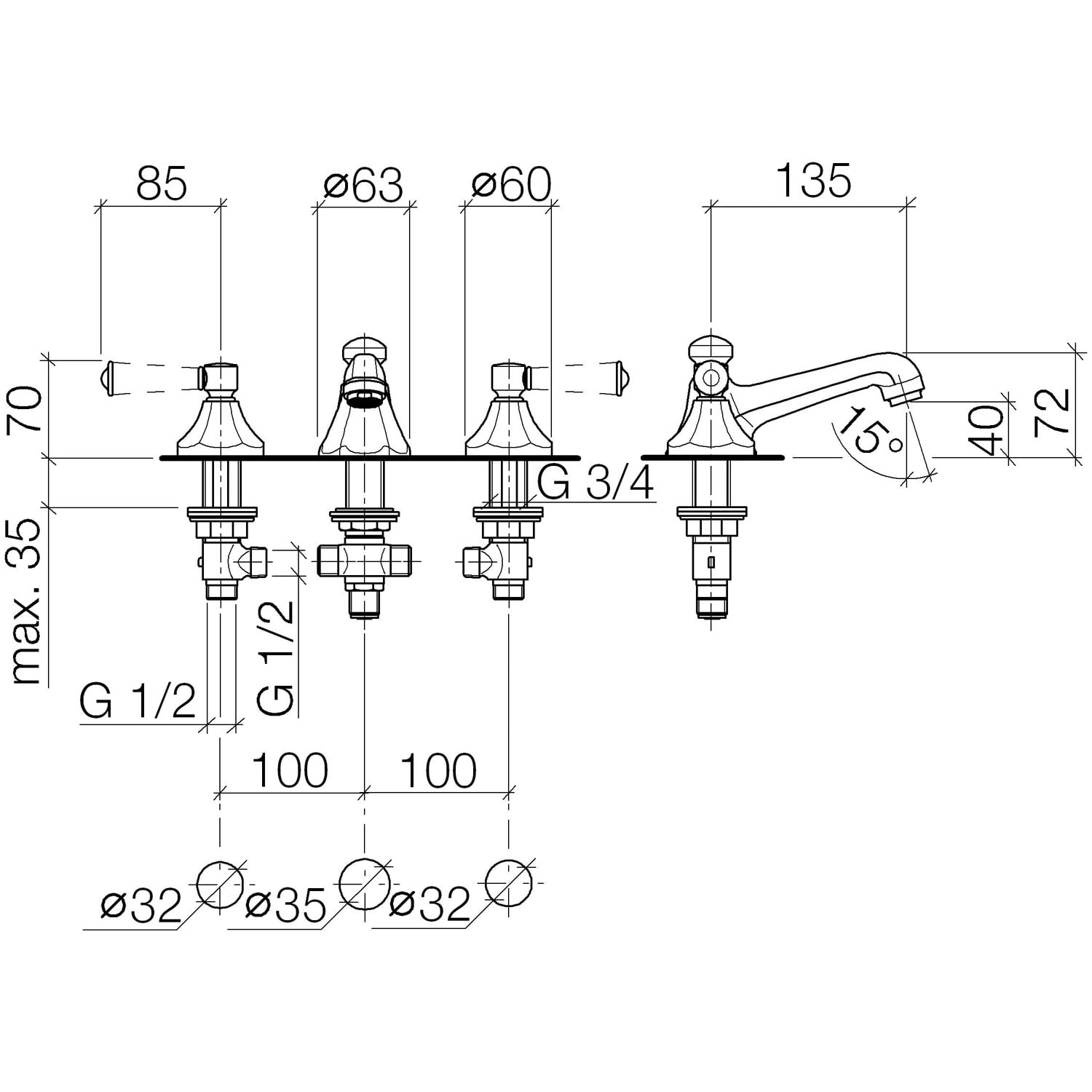 Dornbracht Madison Flair Waschtisch-Dreilochbatterie