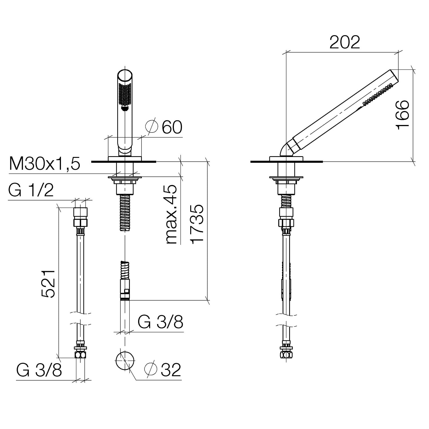 Rosette Ø: 6, Brauseschlauch: 175 cm