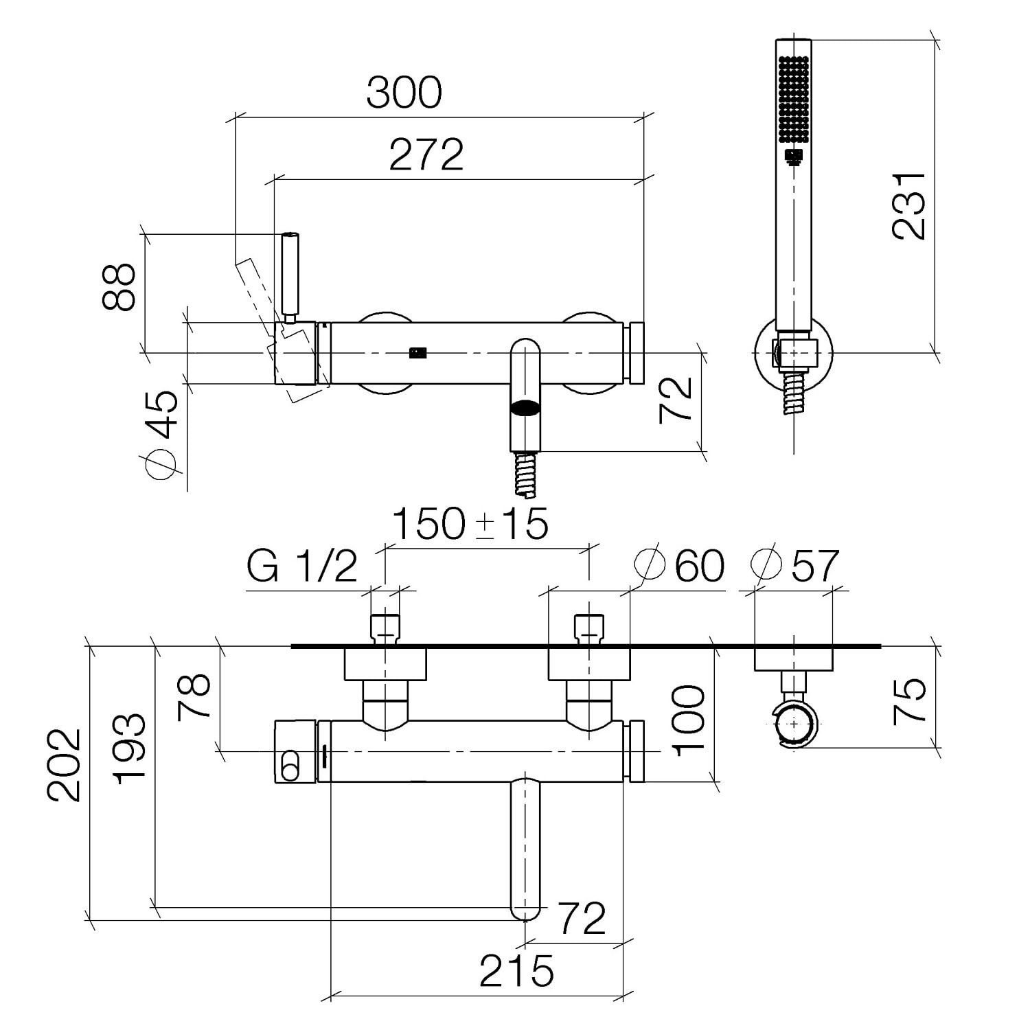 Dornbracht Meta Wannen-Einhandbatterie für Wandmontage mit Schlauchbrausegarnitur