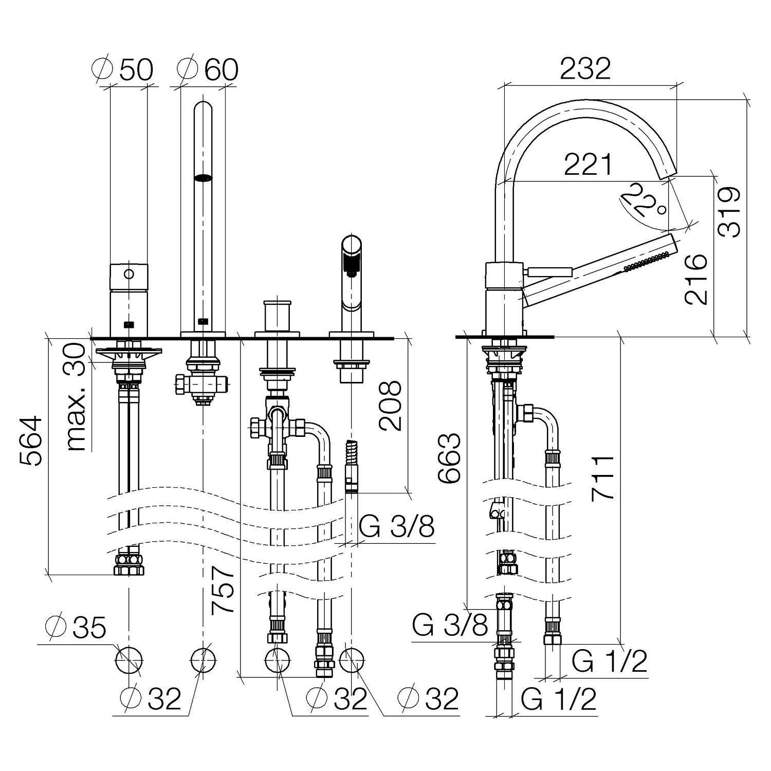 - Armaturenhöhe 31,9 cm