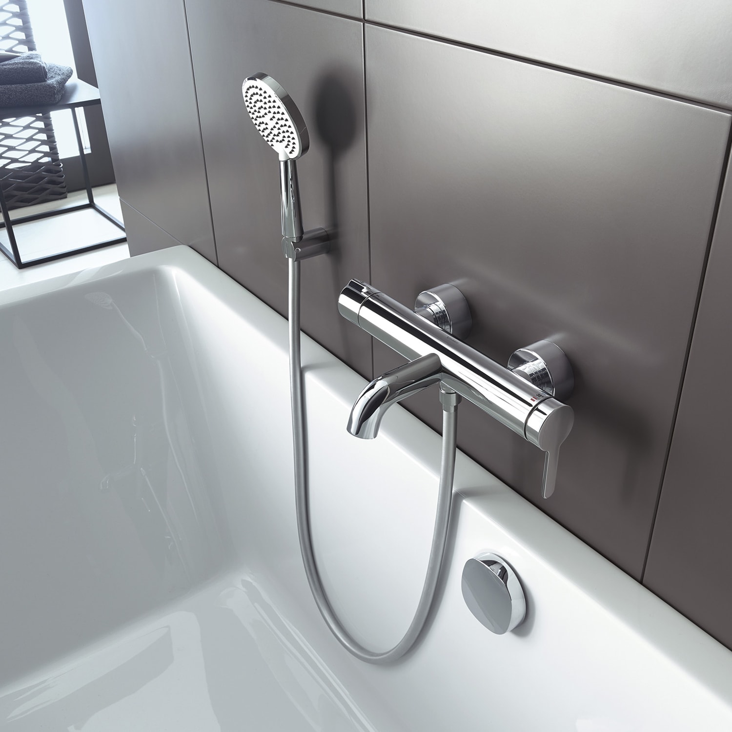 - Zweiloch-Wannenarmatur für Wandmontage, Aufputz