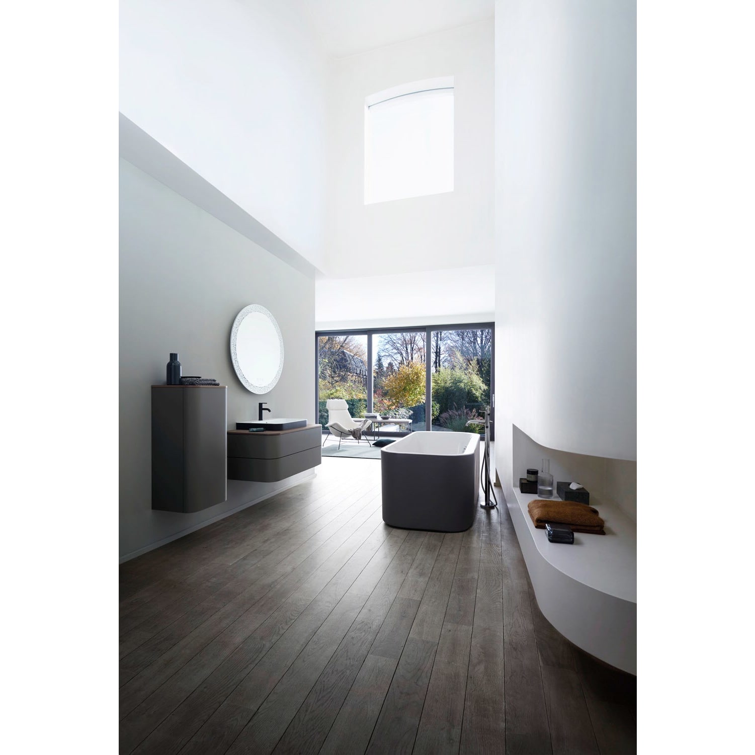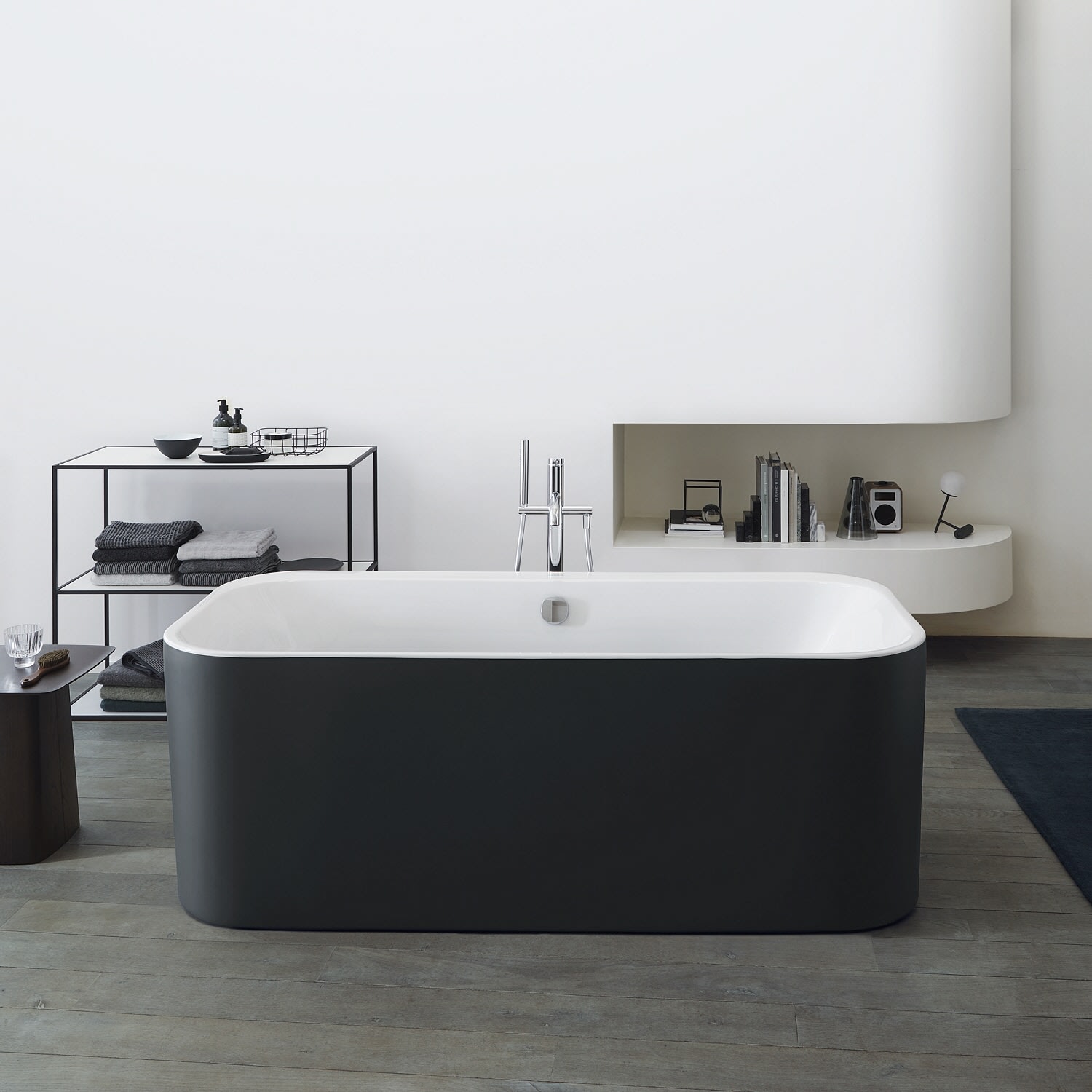 Blickfang und stilvolle Bad-Ikone: die freistehende Duravit Happy D.2 Plus Badewanne by sieger design präsentiert sich als einzigartiger Solitär. Die serientypisch fein abgerundeten Ecken und eine nahtlos angeformte Acrylverkleidung verleihen der freistehenden Badewanne besondere monolithische Anmut. Die Verkleidung ist nicht nur in klassisch glänzendem Weiß erhältlich, sondern ebenso in Graphit Supermatt und besticht durch ihre außergewöhnliche Optik mit perfektem Materialübergang. Zwei gemütliche Rückenschrägen sowie ein mittig angeordneter Ab- und Überlauf versprechen bequemen Sitzkomfort und ein luxuriöses Badevergnügen – sowohl allein wie auch zu zweit. Dank der Fertigung aus schlag- und stoßunempfindlichem Sanitäracryl weist die elegante Badewanne eine glatte, porenfreie Oberfläche auf und erfreut mit ihrer angenehmen warmen Haptik.