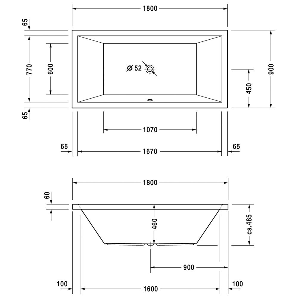 Duravit Starck Badewanne Rechteck 180 x 90 cm mit zwei Rückenschrägen