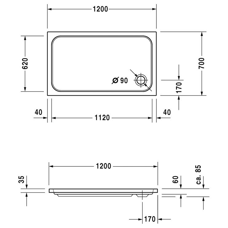Duravit D-Code Rechteck Duschwanne 120 x 70 cm
