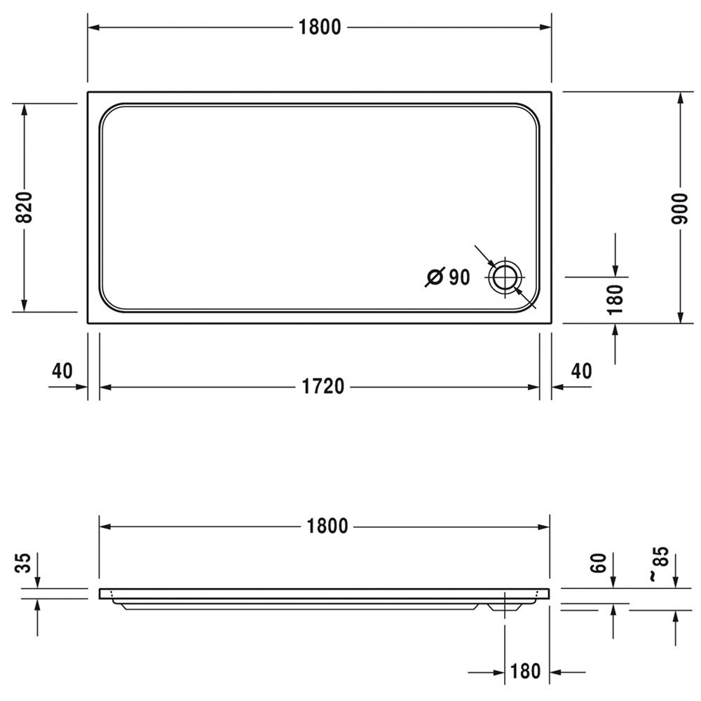 Duravit D-Code Rechteck Duschwanne 180 x 90 cm