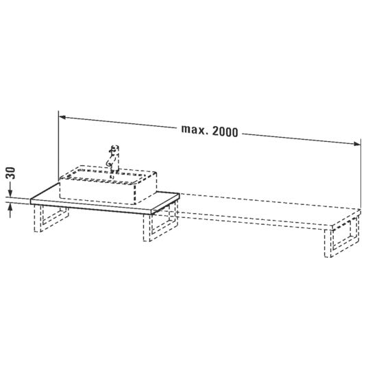 Duravit L-Cube Konsole 170 x 48 cm für Aufsatzbecken und Einbauwaschtische