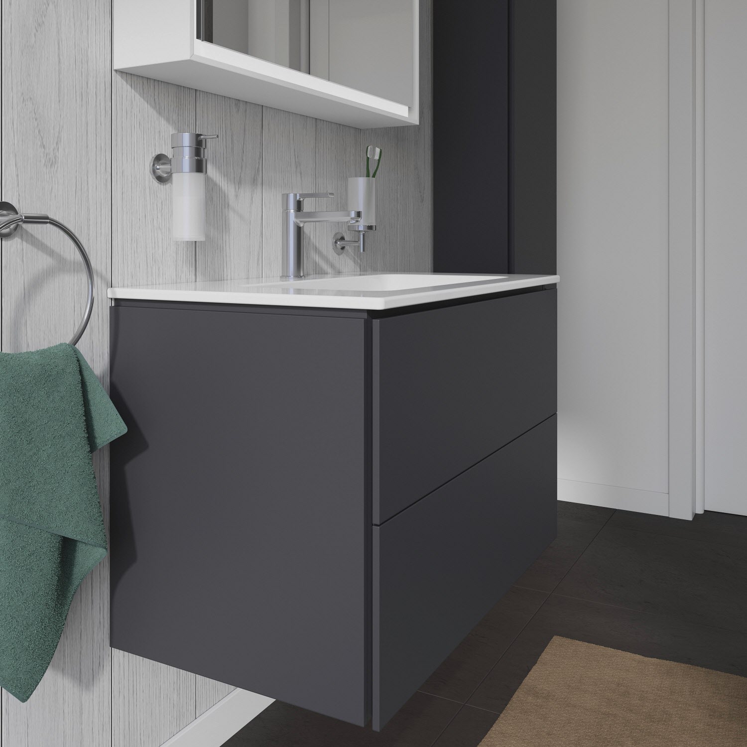 Es stehen zahlreiche Farb- und Oberflächengestaltungen von edlen Lacken bis hin zu natürlichen Holzoberflächen zur Auswahl. Der Waschtischunterbau wird in sorgfältiger Handarbeit unter Einsatz modernster Technik komplett in Deutschland hergestellt und genügt höchsten Qualitätsansprüchen. Zum Schutz vor Eindringen von Wasser und hoher Luftfeuchtigkeit gibt es keine offenen Kanten, der Unterbau ist völlig nässeunempfindlich.