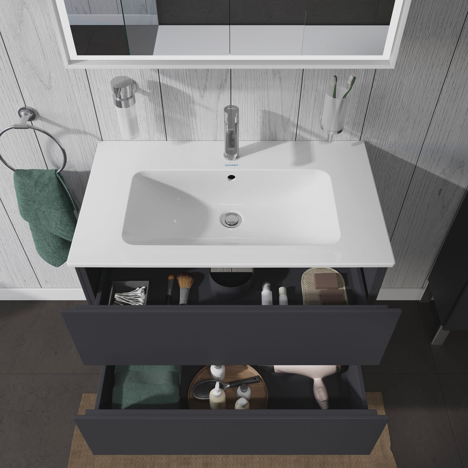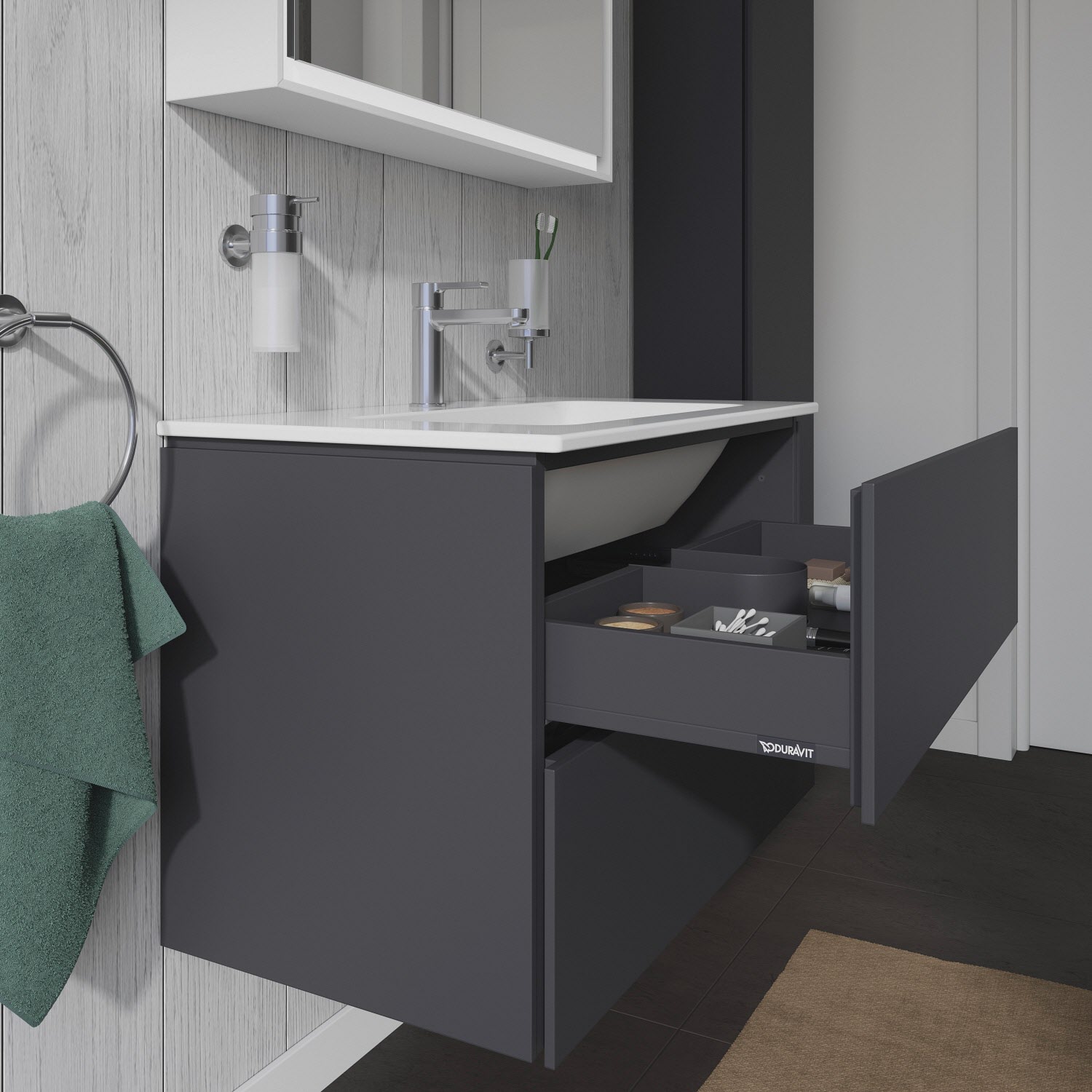 Duravit L-Cube Waschtischunterbau wandhängend mit 2 Auszügen, 82 x 48,1 cm, Becken mittig