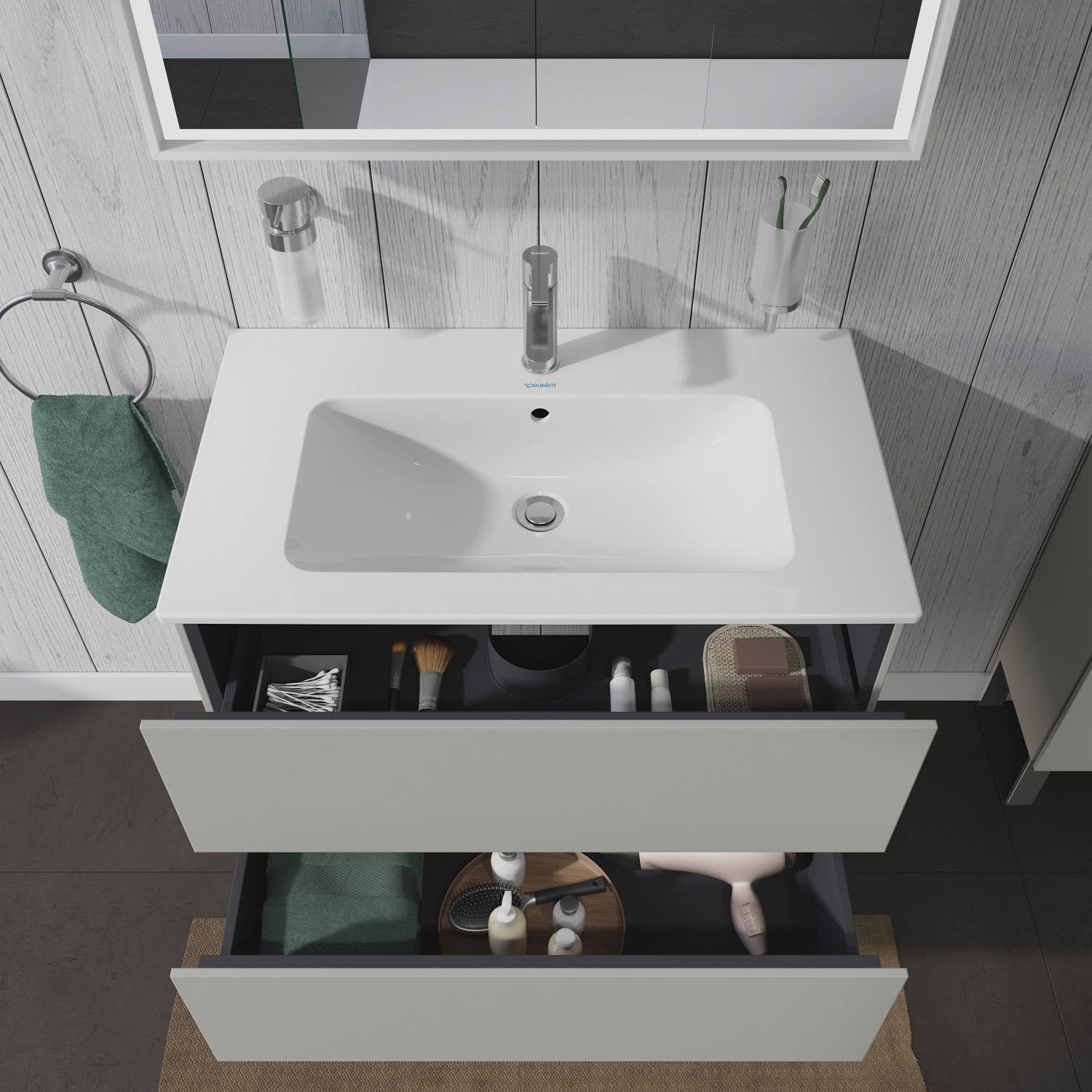 Duravit L-Cube Waschtischunterbau wandhängend mit 2 Auszügen, 82 x 48,1 cm, Becken mittig