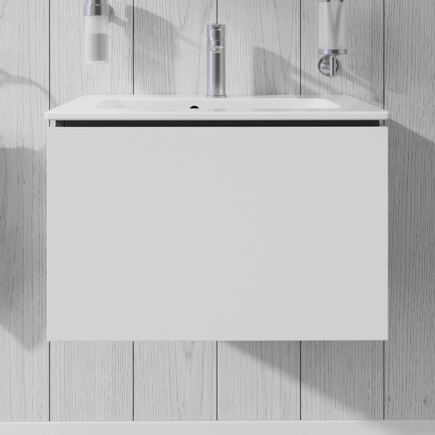 Dieser wandhängende Duravit Waschtischunterbau stammt aus der stilvollen Badmöbel-Reihe L-Cube des Designers Christian Werner. Ein Vollauszug bietet eine hohe Tragfähigkeit (bis 30 kg) und viel praktischen Stauraum. Als Compact-Ausführung ragt der zum ME by Starck Waschtisch #234263 passende Unterschrank nicht so weit in den Raum hinein und ist damit auch für kleine Bäder ideal geeignet. Ein komfortabler Selbsteinzug mit Dämpfung sorgt für ein sanftes Schließen der Schubladen. Das Möbel hat keinen Griff. Mittels Tip-on-Technik öffnet und schließt es sich durch sanften Fingerdruck. Es stehen zahlreiche Farb- und Oberflächengestaltungen von edlen Lacken bis hin zu natürlichen Holzoberflächen zur Auswahl. Dank eines optional integrierbaren, werksseitig verbauten Einrichtungssystems kann der Stauraum bestmöglich organisiert werden. Der Waschtischunterbau wird in sorgfältiger Handarbeit unter Einsatz modernster Technik komplett in Deutschland hergestellt und genügt höchsten Qualitätsansprüchen. Zum Schutz vor dem Eindringen von Wasser und hoher Luftfeuchtigkeit gibt es keine offenen Kanten, der Unterbau ist völlig nässeunempfindlich.