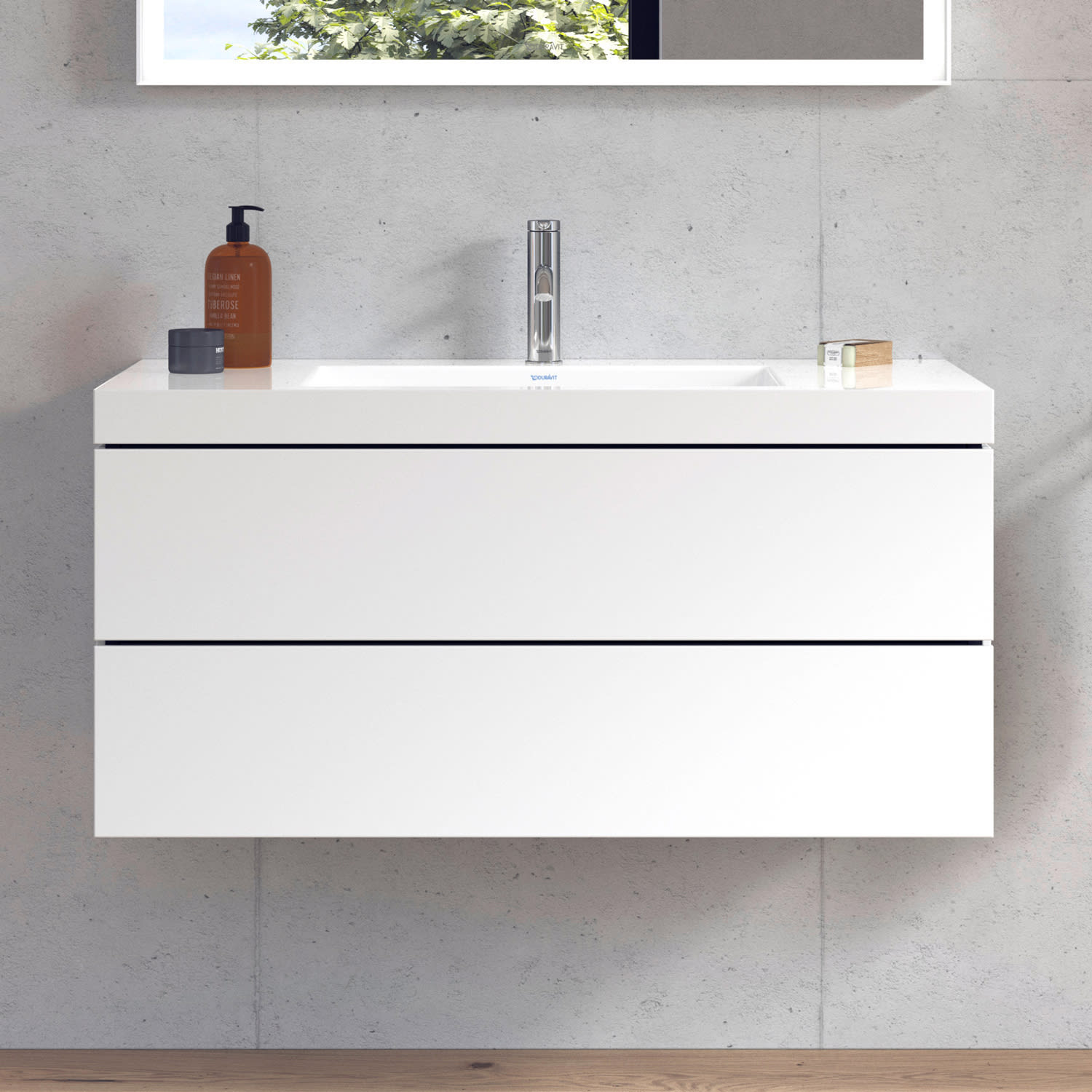 Duravit L-Cube Möbelwaschtisch c-bonded wandhängend mit 2 Auszügen und 1 Hahnloch 100 x 50 cm
