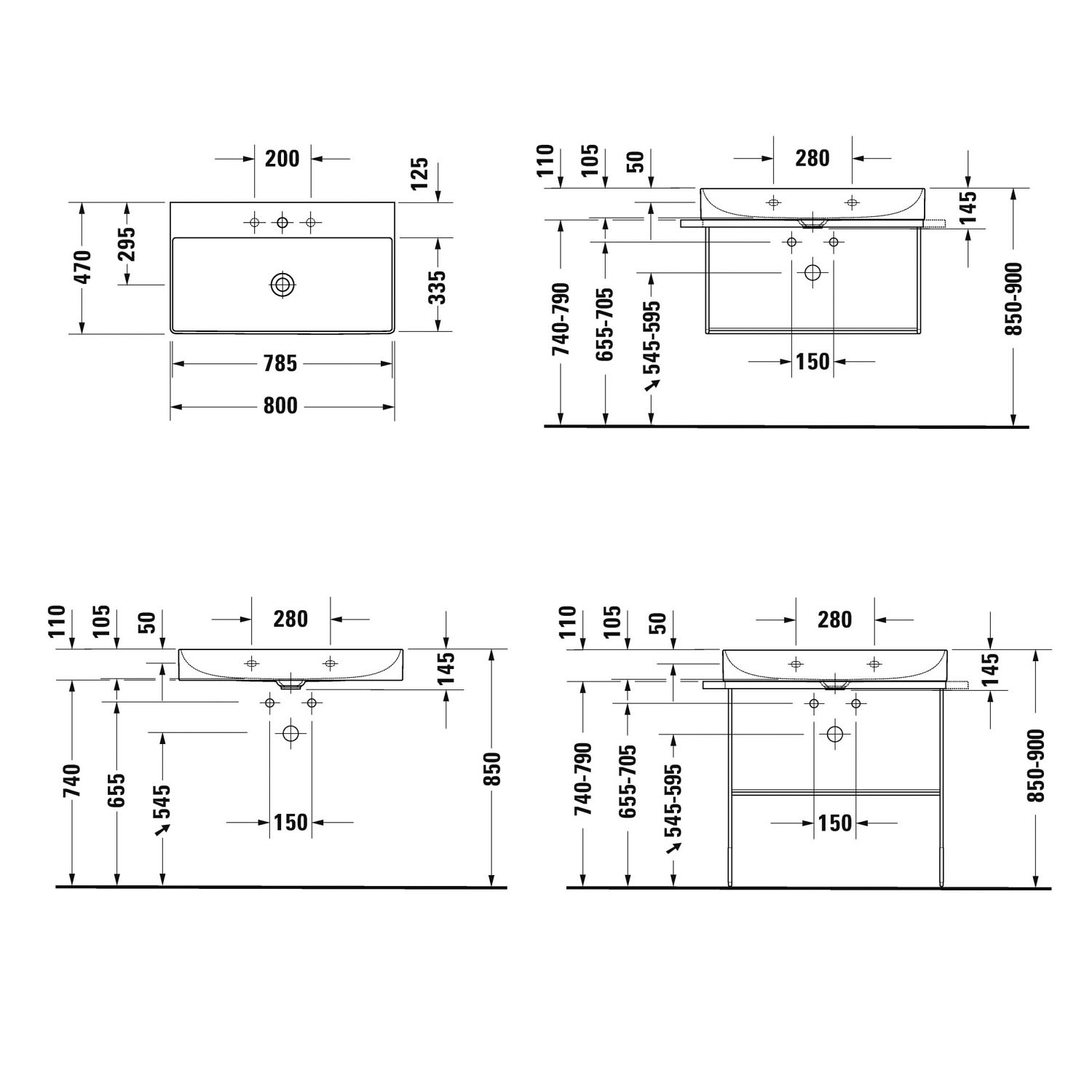 Duravit DuraSquare Waschtisch mit 1 Hahnloch, 80 x 47 cm