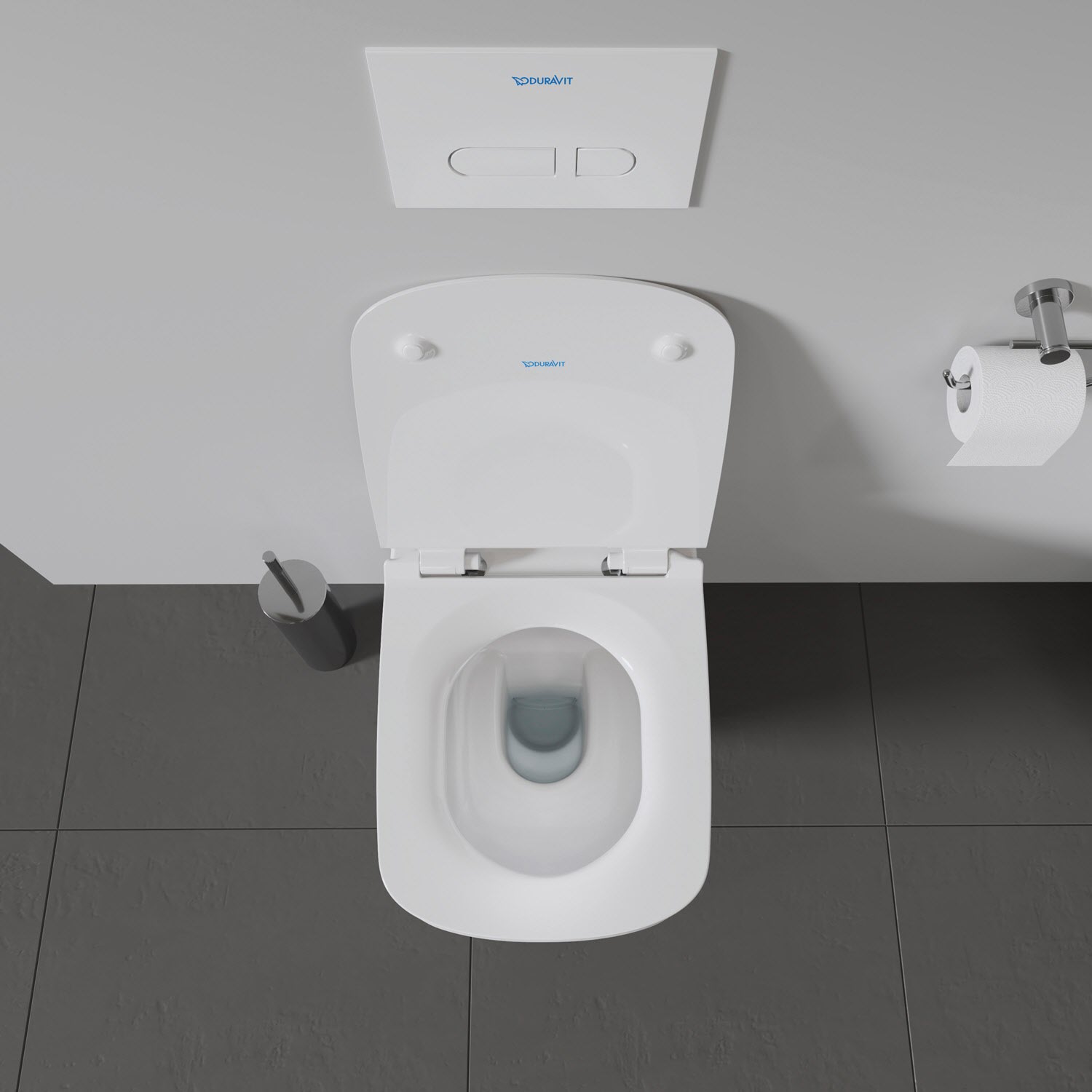 • offener Spülrand Duravit Rimless® mit dynamischer Wasserführung: hygienisch einwandfreie Spülergebnisse auch bei kleinen Wassermengen