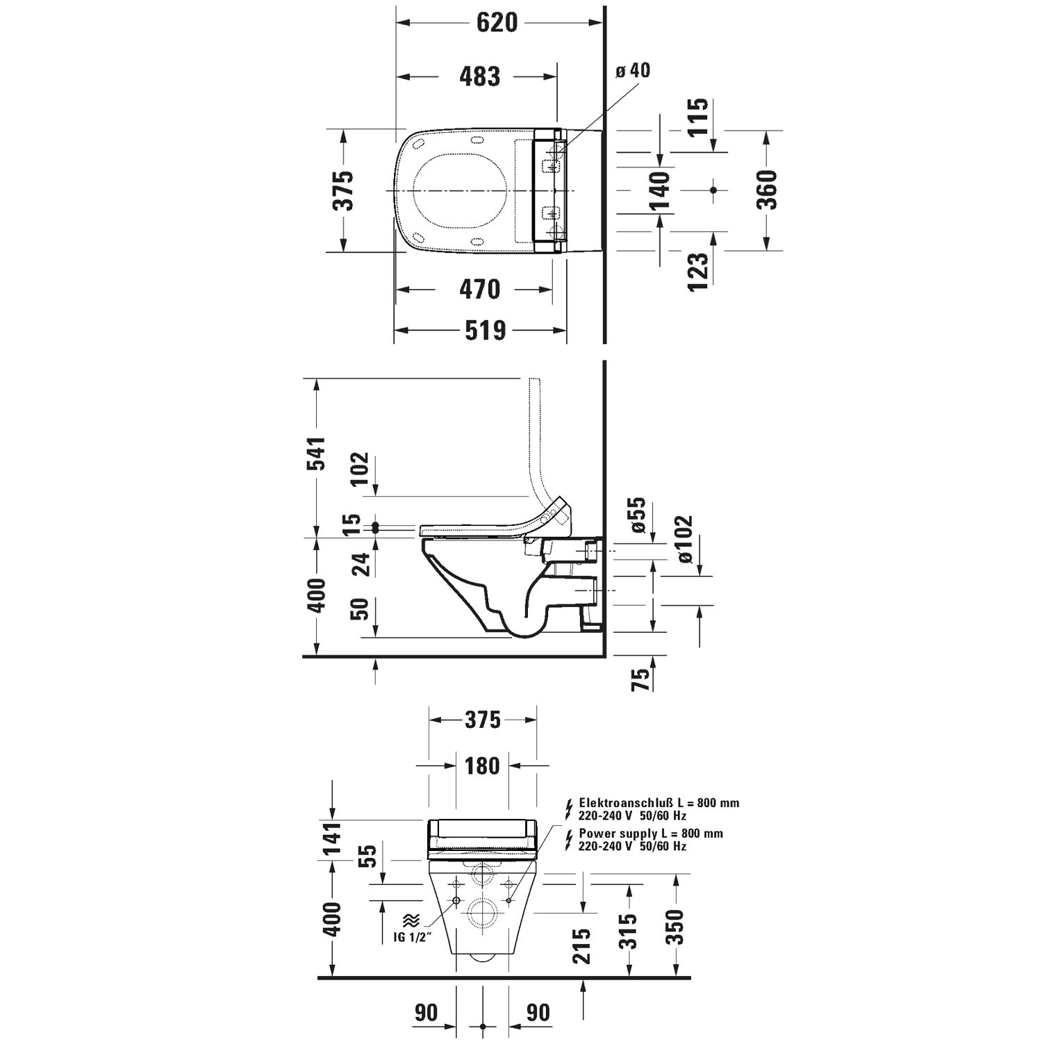 - Montage nur in Verbindung mit SensoWash DuraStyle WC-Sitz Art. 611200002304300