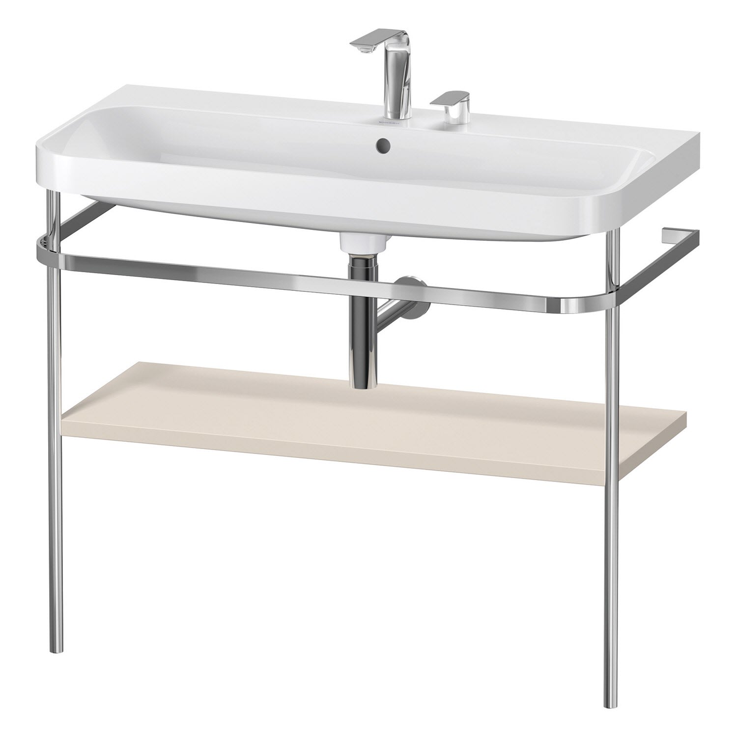 Duravit Happy D.2 Plus c-shaped Waschtisch mit 2 Hahnlöchern, 97,5 x 49 cm, mit 1 Holzfachboden