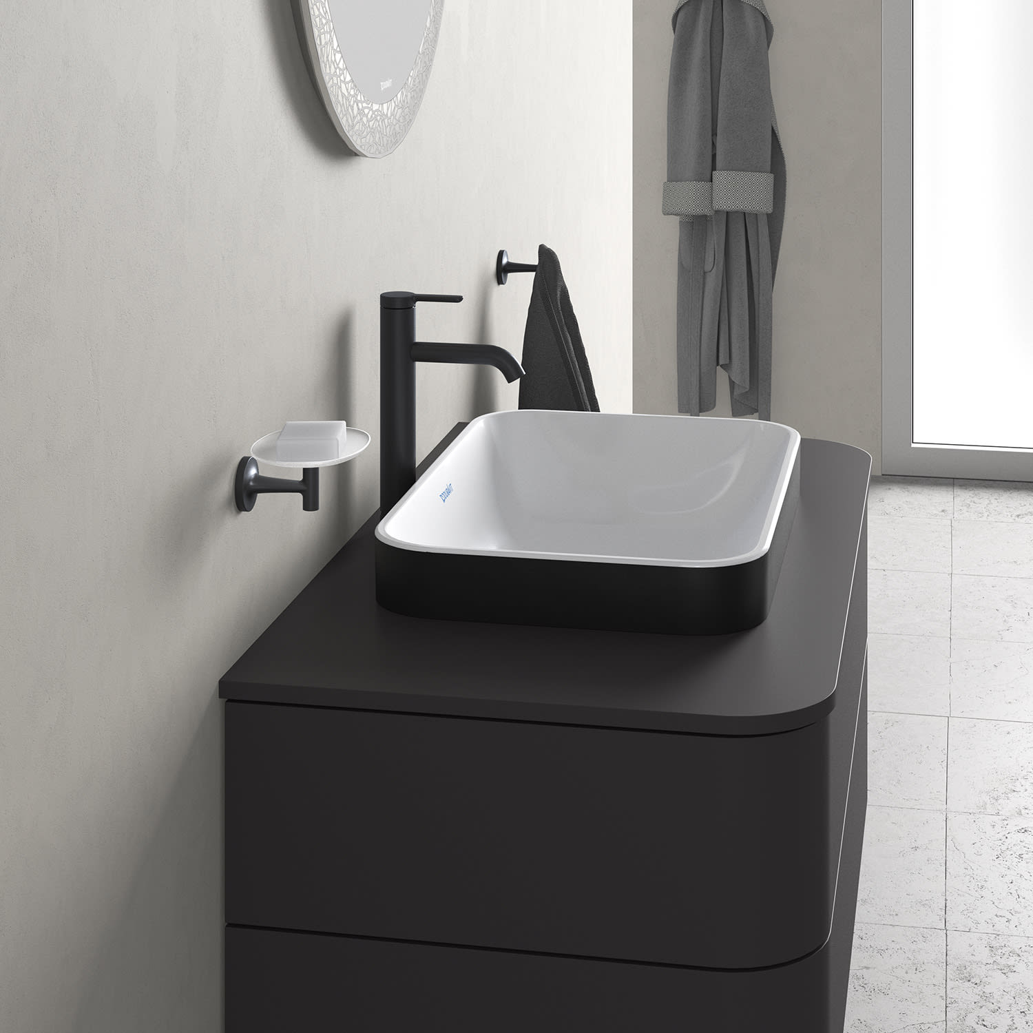 Ob puristisch-einfarbig in Weiß oder Anthrazit Matt oder zweifarbig-kontrastierend – die markanten Formen wirken immer kultiviert. Dank seiner geschliffenen Unterseite eignet sich das schöne Aufsatzbecken ideal für Badmöbel oder Konsolenplatten. Als perfekte Ergänzung bieten sich Duravit C.1 Waschtischarmaturen an, die das moderne Design und die hochwertige Qualität der Badkeramik noch unterstreichen.
