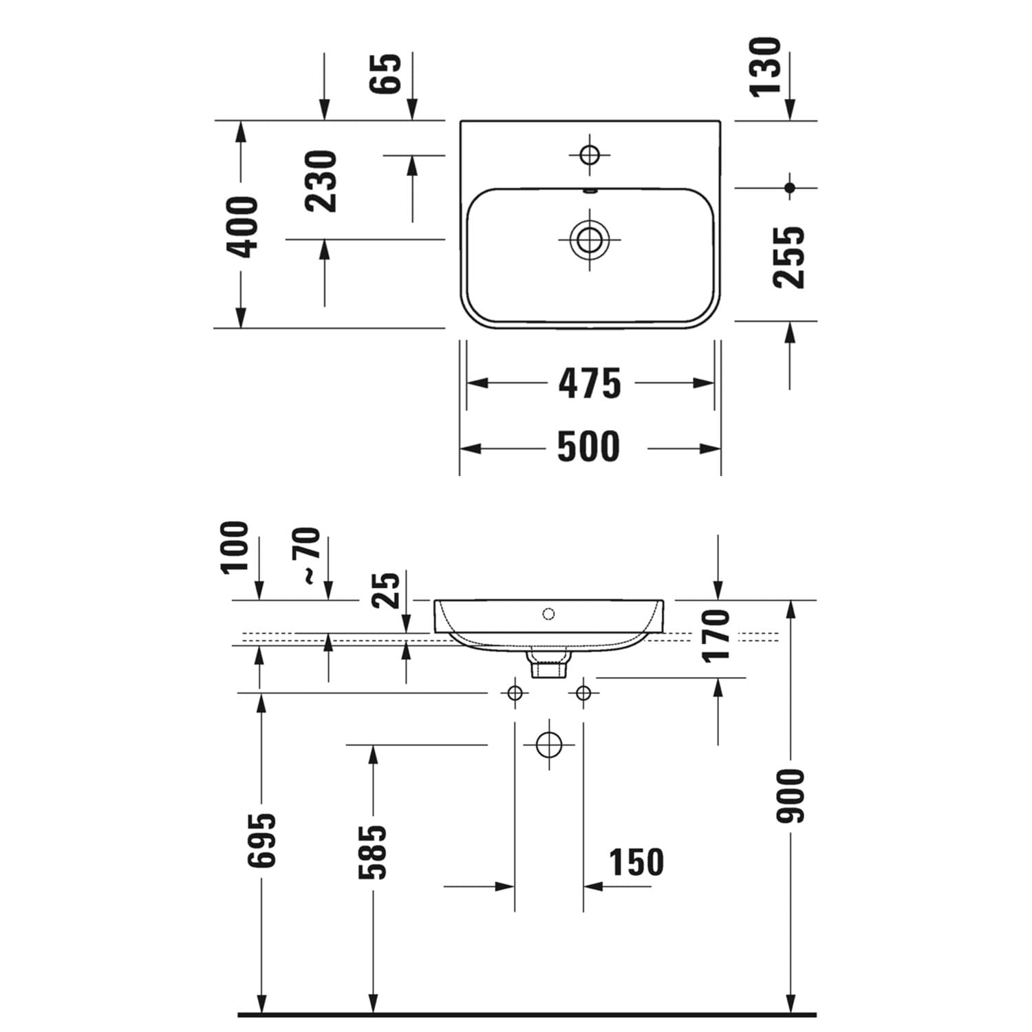 Duravit Happy D.2 Plus Aufsatzbecken 50 cm weiß, mit Überlauf, 1 Hahnloch