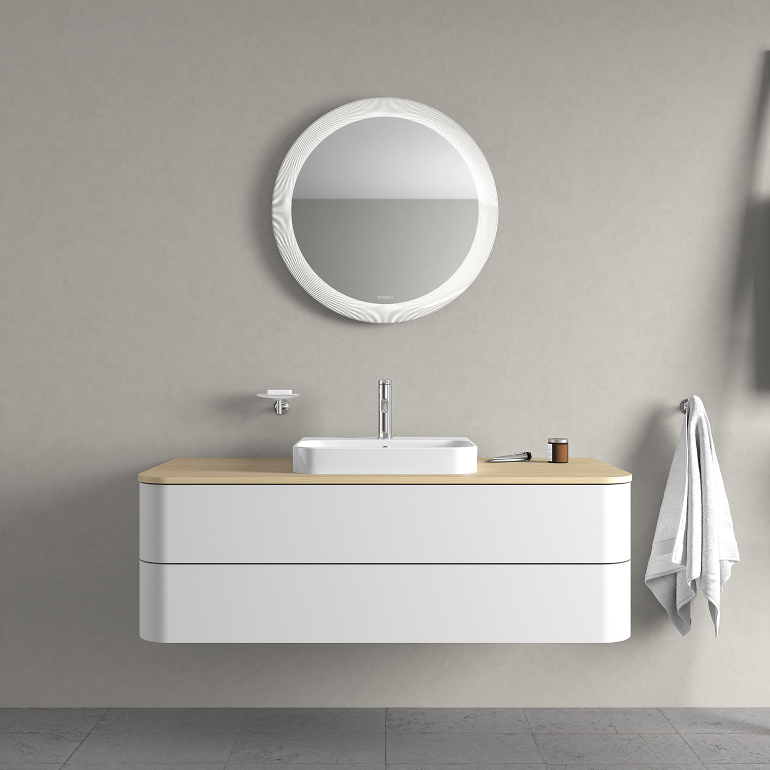 Das Happy D.2 Plus Aufsatzbecken by sieger design bezaubert mit seinen charakteristischen Rundungen und den vielen nützlichen Details nicht nur Design-Fans! Seine großzügige Hahnlochbank bietet ausreichend Platz zur Installation einer passenden Armatur, beispielsweise aus der Duravit C.1 Kollektion, und präsentiert sich gleichzeitig als praktische Ablagefläche für Badutensilien.