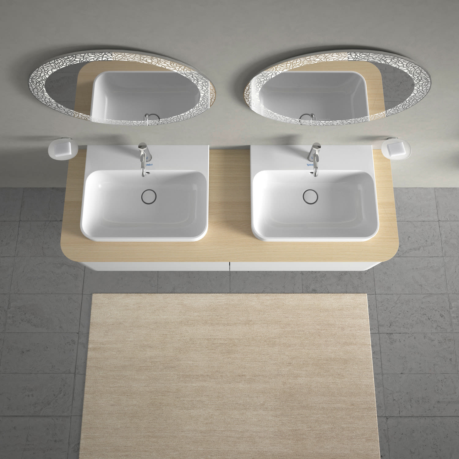 Das Happy D.2 Plus Aufsatzbecken by sieger design bezaubert mit seinen charakteristischen Rundungen und den vielen nützlichen Details nicht nur Design-Fans! Seine großzügige Hahnlochbank bietet ausreichend Platz zur Installation einer passenden Armatur, beispielsweise aus der Duravit C.1 Kollektion, und präsentiert sich gleichzeitig als praktische Ablagefläche für Badutensilien.