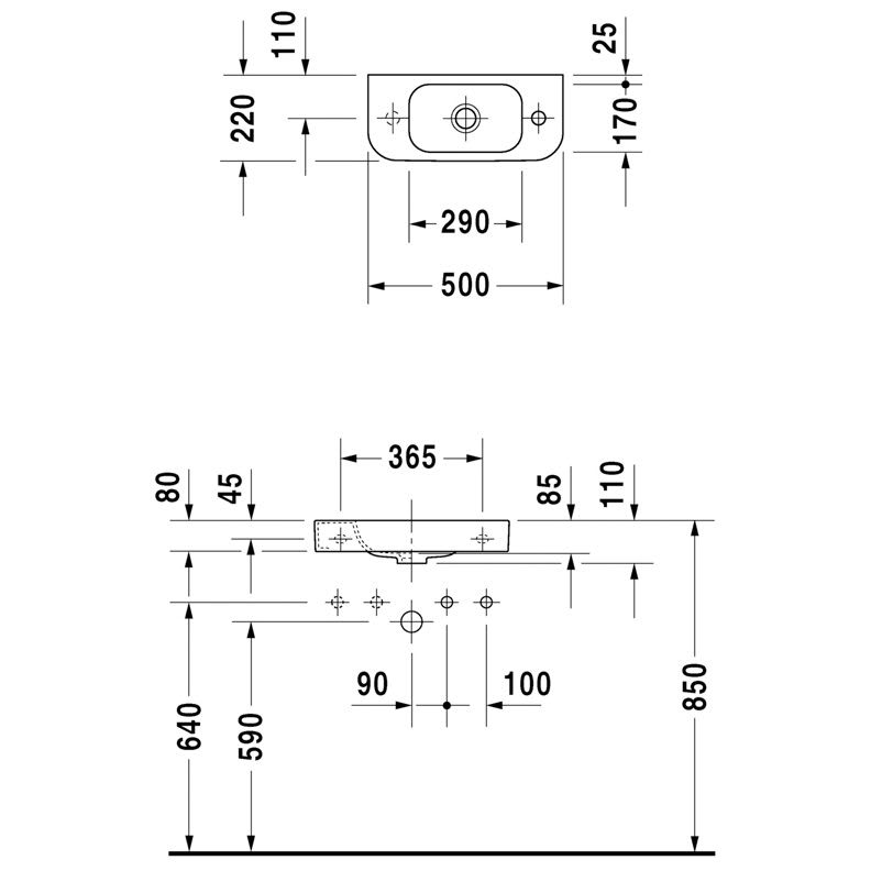 Duravit Happy D.2 Handwaschbecken 50 cm, Hahnloch links