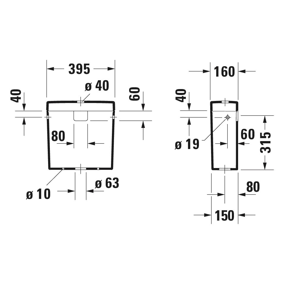 Duravit Happy D.2 Spülkasten für WC-Kombination Anschluss unten links
